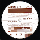 From the ON_ series where unconventional, hard edged, experimental and archival club cuts get's re-presented, remixed and highlighted. Laton outs Russian newcomer Ectro Usic with a slamming, gritty & heavy duty electro/techno full side. Flip carries DJ Sotofett's broken but strobicly steady club mix of – Austrian inventor & synth specialist – A.Burger's "Device C" which in original suit has been released by Craft Records (1996) and Laton (1999). A proper zone out.